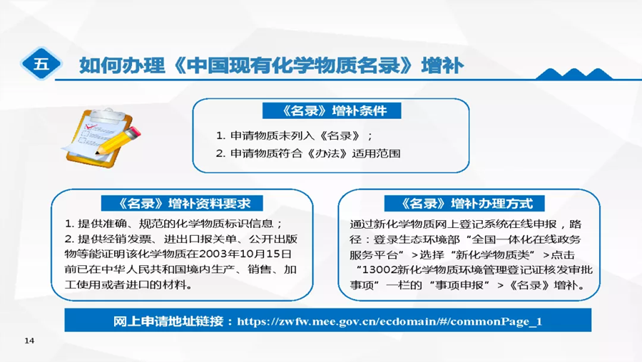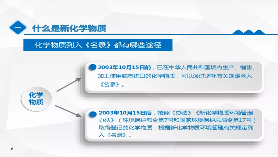 1)首先核查企業(yè)經(jīng)營(yíng)的化學(xué)物質(zhì)是否屬于新化學(xué)物質(zhì),自查請核對MEP頒發(fā)的2013版IECSC及后續的5次公告增補列入IECSC的目錄清單,或者委托固體廢物與化學(xué)品管理技術(shù)中心(SCC)進(jìn)行查新。如果是新化學(xué)物質(zhì)或者屬于新用途管理類(lèi)的現有化學(xué)物質(zhì),建議盡快準備登記或備案。